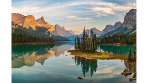 As the largest natural lake in the Canadian Rockies, Maligne Lake is a spectacular natural wonder of sublime beauty. As part of a 3 day self supported canoe trip, I was able to visit the island in beautiful golden hour light without any other person around. The stillness of the water was an absolute gift which we cherished while capturing this image.
