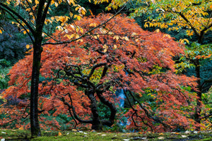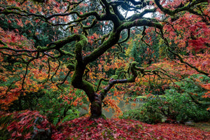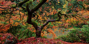 the spirit of the Portland Japanese Gardens in peak fall color. View Richter's stunning fine art photography capturing the serenity, and traditional beauty of this tranquil sanctuary.