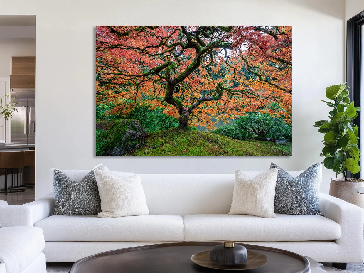 The infamous Japanese Maple inside the revered Portland Japanese Botanical Gardens has been on my bucket list of places to shoot for over a decade. This October, the stars aligned and I booked a ticket to Portland for peak autumn color! It had been raining for a week straight but when I landed the low clouds and fog began to burn off revealing some hopeful light.