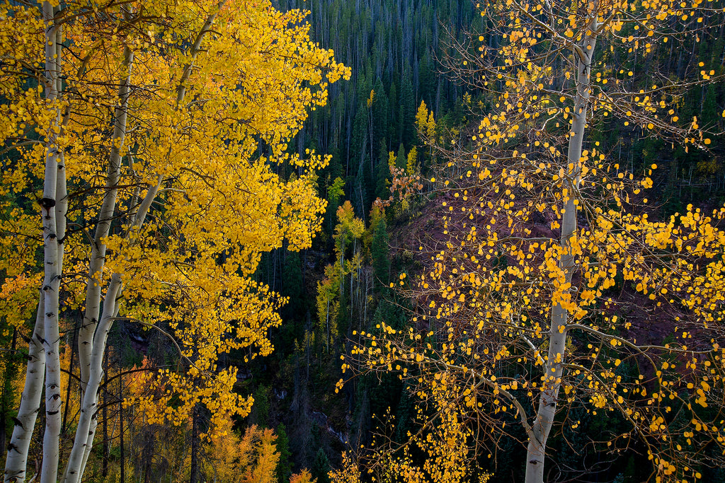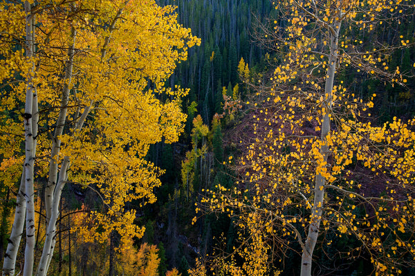 Contrast is a fundamental element in photography and examples in nature abound. While heading out of Vail on a very bumpy forest road leading into the Gore Range, I had plenty of time to admire my surrounding at the crawling speeds the road demanded. This was a particularly colorful year in Colorado and the tress seemed to glow from within on this particular evening. Once I framed this scene and viewed it through the camera I was immediately hooked, this was the shot I needed to capture!